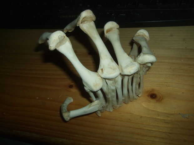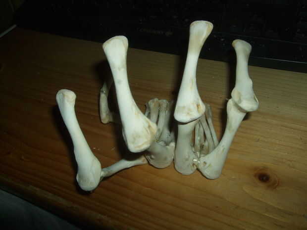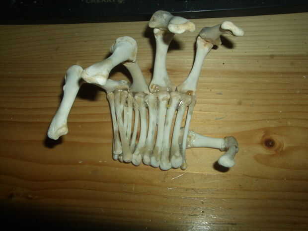 Primero, ordenados a través de los huesos más grandes y había escogido ocho para los dedos. Yo les alineado como se puede ver en las imágenes (perdón no tomo más), de tal manera que formaron una especie de Unión, que es que el final 3.Board de un hueso tope bien contra el otro y conservar al menos dos puntos de contacto cuando doblado en la posición que quería. Tenía sentido para mí, aunque no puedo explicarlo correctamente.