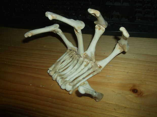Después de pegado el tigether de los dedos empecé a hacer una especie de "balsa" de los huesos de la palma. Yo lo llamo una balsa porque me recuerda un poco de troncos juntos empatando a hacer un improvisado, balsa. He intentado encontrar los huesos que encajan en la curvatura de los demás, pero que terminó rápidamente con una curva que no haría para los lados de una palm, así que tuve que encontrar huesos que encajarían en la curva sin añadir a ella. Una vez más, siento que tiene sentido Smás en mi cabeza que escrito.