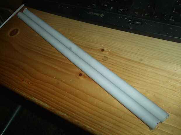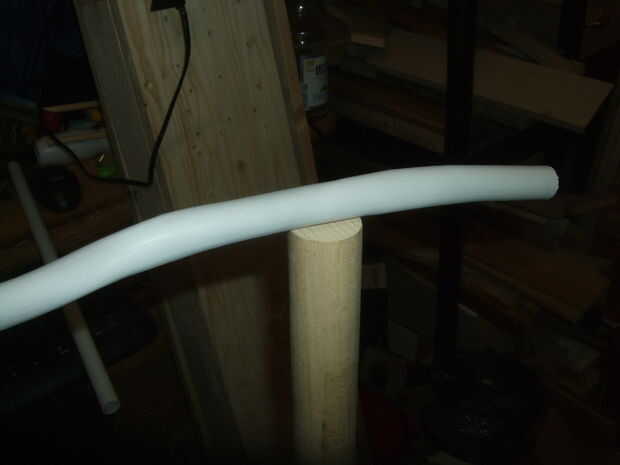 Usar una pistola de aire caliente, entonces suavemente doblado les en la forma, es decir calienta para arriba y trabajó en una espiga grande (como un yunque, pero sin un martillo, la mente) sólo un poco para que no se vería demasiado redondo. Me aseguré de que la barra metálica todavía cabrían al menos a la mitad en uno de los tubos, aunque (o ambos si esa es su elección).