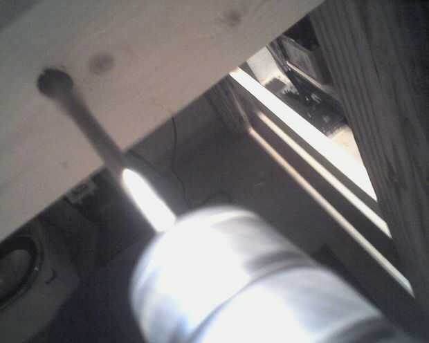 Utiliza una pala de 1/2" broca para taladrar un agujero a través de la 2 x 4 en la parte frontal de la mesa de trabajo. Trate de centrar, o al menos dar suficiente espacio en la parte superior si su banco tiene un labio, en molde que desee utilizar una fuente aquí.
