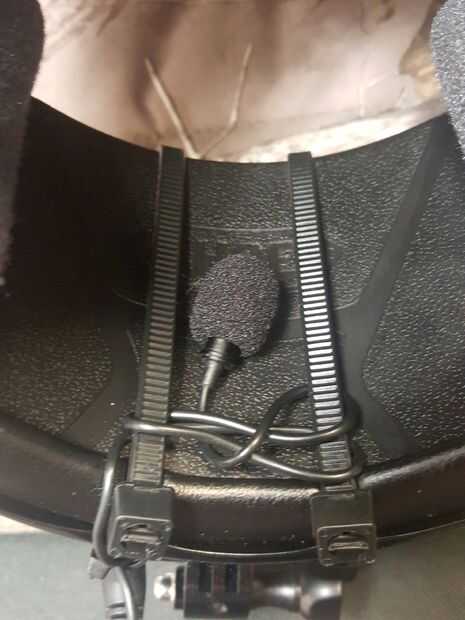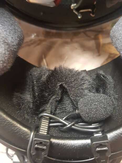 El micrófono estaba envuelta en espuma, encima de la espuma vino con y enterrado en la almohadilla de la mejilla. Fue quitado, al descubierto y envuelto alrededor de las ataduras de cremallera resistente en el interior del casco. Hice un bolsillo con las cosas nuevas de manguito esponjosa y colocó el micrófono con la espuma nativo en el bolsillo. Luego, fue apretada y zip atado en su lugar. Las pruebas iniciales de sonido están bien. Voy a salir de paseo con él. Si no ves una actualización sobre esto, asumir que si fue espléndidamente y solucionó todos mis problemas perfectamente. Una cosa, podría poner el mullido manguito cosas sobre la espuma nativa y enterrarlo en la almohadilla de mejilla si necesito hacer otra mejora.