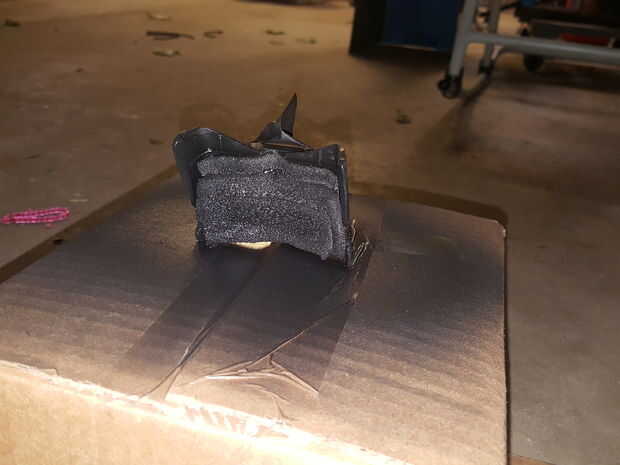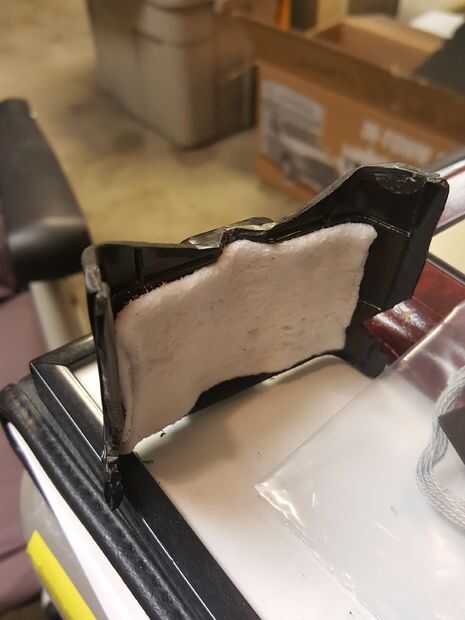 Puedes ver que el Wonderflex es bastante bueno tomando la forma de en que forzarlo. Ajustaron al soporte una vez haya enfriado. Entonces, acaba de golpear todo con alguna capa de imprimación negro para opacarlo fuera (coincide con la razón casco mejor, no hay otro). Agrego Wonderflex un poco más de necesario, por lo que después pinté todo, algo de él fue quitado. Esa primera capa parecía funcionar bien.