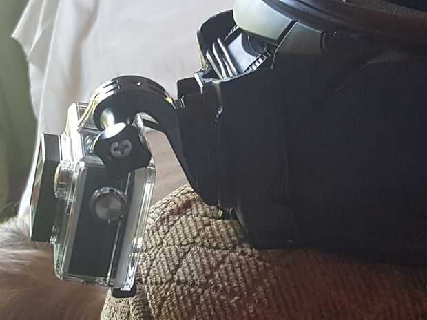 Usé la presilla de montaje con curvas y había orientado la cámara boca abajo. Cuelgan bajo y muy adelante. Realmente cambié este acuerdo más tarde, pero no antes de sacar para la prueba de unos paseos para probarlo, de hecho, atrapar mucho viento y causar todo tipo de molestas inestabilidad de imagen, etc.. Si deseas actualizar #1 para cómo fijo.