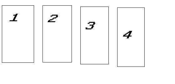 Hacer 4 pilas de las cartas de la parte superior 4. Ponga otra tarjeta en la parte superior 1 punto después otro en el punto 2 otro en el punto 3 y otro en el punto 4. Si realizaste este derecho debe terminar para arriba en las tarjetas de cada pila 4 cada uno tiene los gatos, reinas, Reyes, ases.