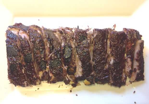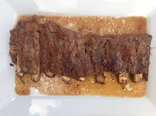 Aproximadamente 2 libras de costillas de cerdo, grasa recortada (no quitar la membrana).