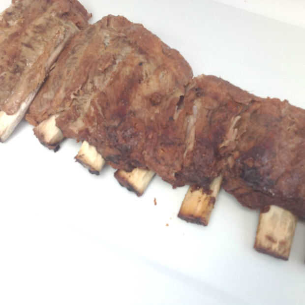 Si sigues cualquiera de otro libro, puede recibir instrucciones para quitar la membrana del lado del hueso de las costillas. Los resultados de esa sugerencia es las costillas pueden romperse en pedazos, usted no será capaz de paso completo. Es el mismo resultado si lo dejas cocinar mucho tiempo. Pero no te asustes. Rocía el jugo sobre las costillas, y tendrás las costillas jugosa deliciosa accidente feliz.
