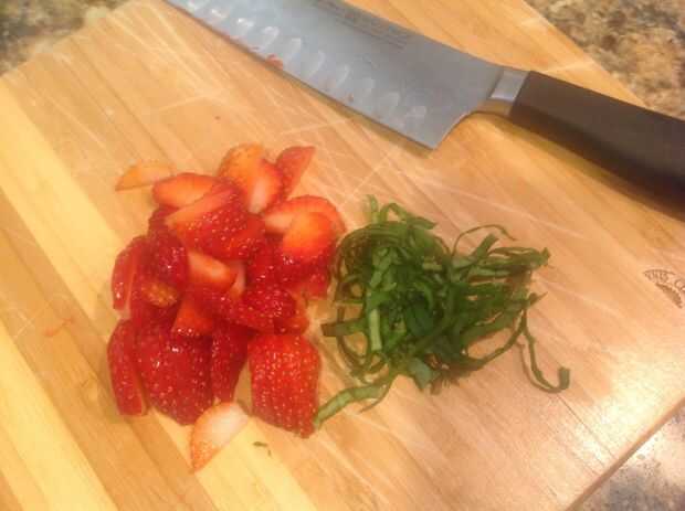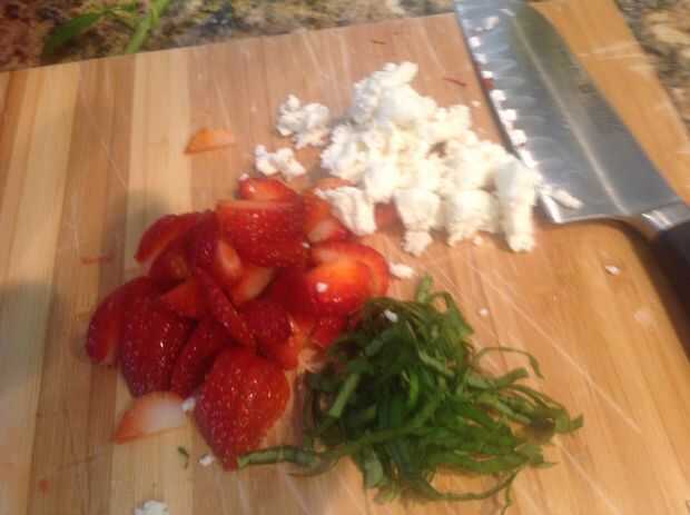Fresa, albahaca, tortilla de desayuno de queso de cabra (2 / 5 paso)