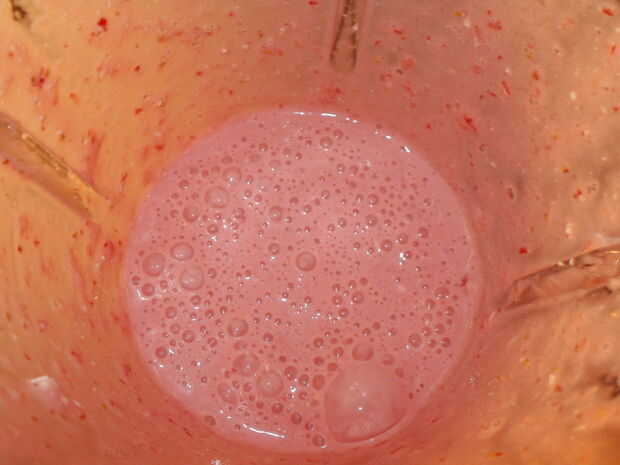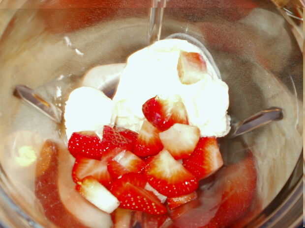 Puse todos los ingredientes (queso crema, fresas, helado y vodka) en la licuadora y mezcla hasta que se mezcle bien.