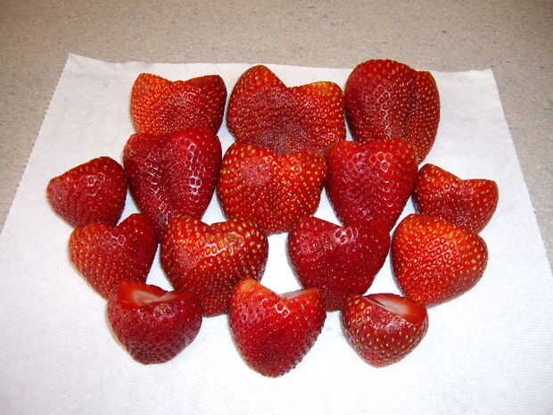 1 1/4 taza de fresas, estrelladas (usted necesitará empezar con al menos 2 1/2 tazas fresas frescas ya que encogen cuando se les romper).