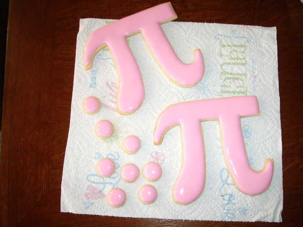 10. hornear los símbolos de pi durante unos 10 minutos y los círculos durante unos 5 minutos. Sáquelos del horno y dejarlos enfriar completamente.