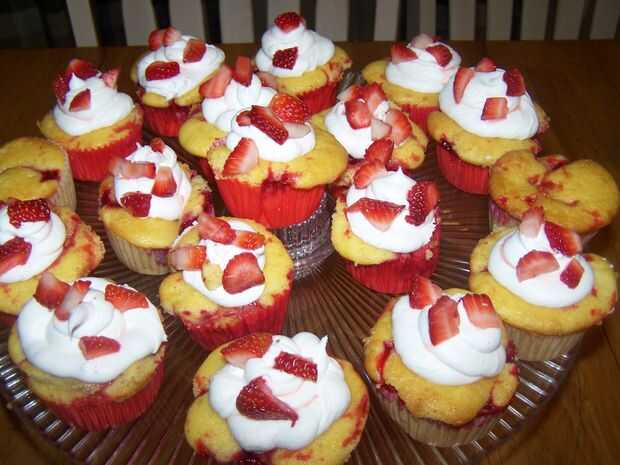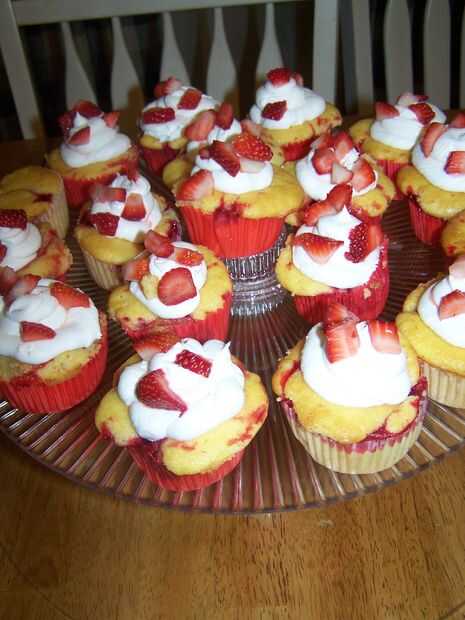 3. usando un cuchillo de la cena y el remolino de fresa de relleno en cada masa de cupcake. Hará un hermoso patrón.