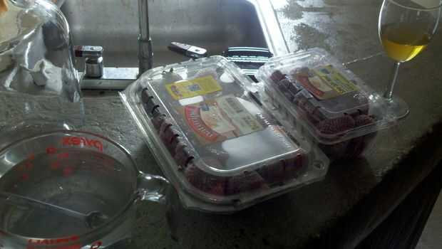 3 libras de fresas. Sé que están fuera de temporada y un poco caro, pero tengo 3 libras por solo $5 en Stop & Shop. Péguelos en el congelador cuando llegue a casa. Les impide ir mal demasiado pronto si no lo haces enseguida. También he escuchado que es realmente bueno para la piel, también.