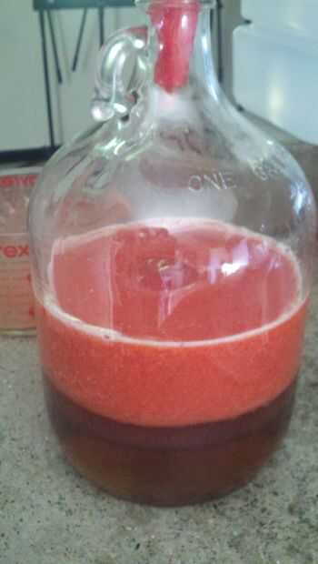 Una vez que estén buena y blanda, retirar del fuego. Usando un colador, vierta el bote en otro contenedor. Añadir el líquido puro a la Damajuana con la miel. Tomé el resto sólido de las fresas y ponerlas en un paño de muselina para colar el resto de los jugos hacia fuera.