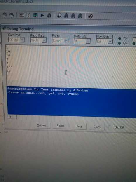 Foto dos es una captura de pantalla de mi instructables Pbasic terminales de prueba CNC MDI.