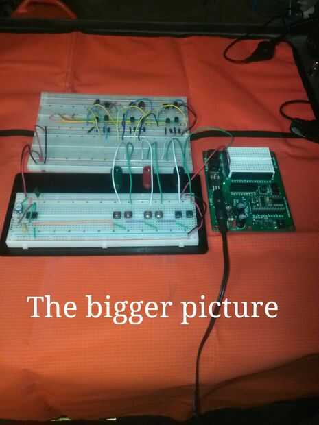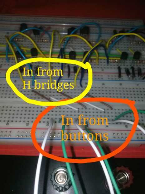 Foto cinco es la conexión entre el botón y los puentes de H.