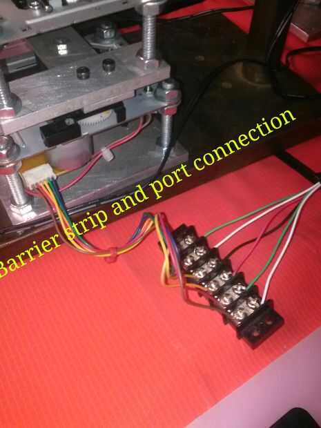 Foto tres muestra las conexiones del eje X. Una vez su cableado puede usar 5v de alimentación del microcontrolador para probarlo. Si los interruptores de límite se establecen derecho obtendrá un efecto de rebote posterior. Si su al revés atascará los engranajes. Invertir los cables verdes para fijar.