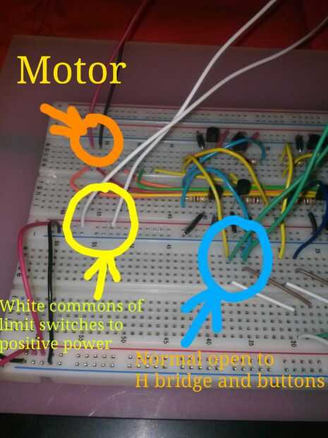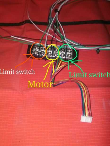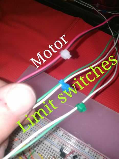 Foto dos muestran blanco de cables utilizados para los interruptores de límite y negro/rojo para el motor.