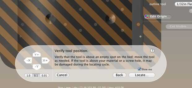 En la ventana de herramientas, seleccione 1/32" planos molino de extremo y a través de la inserción de la herramienta, configurar y localizar el asistente.