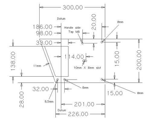 El orificio final es roscado m8 y es necesaria sólo en el lado de la manija de la placa, por supuesto podría tocar este agujero en las placas de ambas para que una zurdo persona fácilmente podría utilizar a la fresadora también.