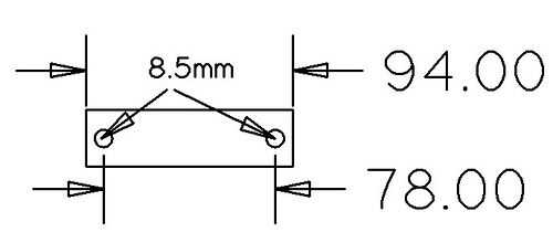 Otra vez nada sorprendente 25 mm X 6 mm X 94 mm con dos agujeros de 8mm perforados en centros de 78mm.