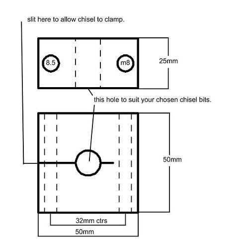 Empezar por marcar y taladrar un agujero en el centro del bloque para satisfacer tus cinceles tienen este conjunto: http://www.screwfix.com/p/mortice-chisel-set-4pc/15113 tienen un vástago de 19 mm pero otros tamaños de caña están disponibles y si usted tiene una variedad puede hacer bloques para adaptarse a diferentes tamaños e intercambiarlos por según sea necesario.