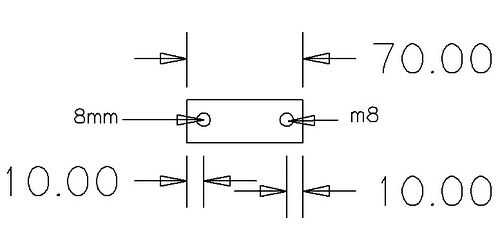 Nada sorprendente aquí sólo una pieza de 25 X 6 mm X 70 mm con una 8mm agujero perforado uno de los extremos y un roscado m8 el otro agujero.