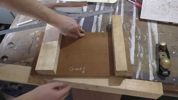 Para esta construcción debe comenzar con una pieza de buena calidad de la madera dura aproximadamente 40 por 25 centímetros y alrededor de 8 milímetros de espesor. Las dimensiones exactas no acabo de encontrar este es un buen tamaño de trabajo críticas. He utilizado madera dura pero también se podría utilizar un contrachapado de madera de calidad, lo importante es que la madera no se mueve después de la construcción.