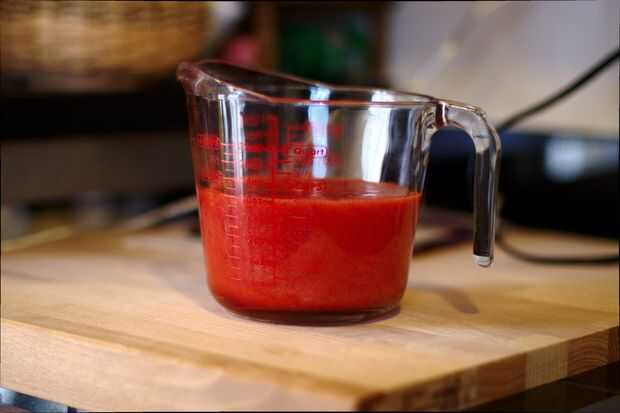 Necesita 500 gramos de puré se marchitan forma - pruebas, sólo puede medir 500 g de bayas; Si se cuela el puré, necesitarás más 700 gramos de bayas enteras.