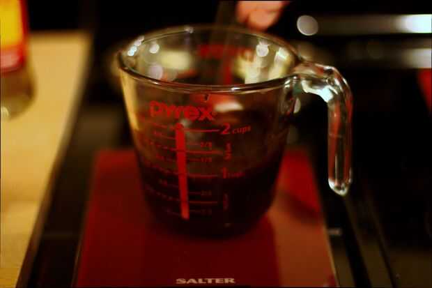 Combine la crema, el jarabe de maíz, vinagre balsámico y azúcar. Poner a hervir (lo hice en el microondas) y verter sobre el chocolate. Deje que el chocolate para sentarse en el baño caliente durante unos dos minutos, luego revuelva para combinar. Deje que la mezcla suave y fresco a 95° F (35° C), luego agregar la mantequilla y la manteca de cacao. Revuelve para combinar, asegurándose de que no queden grumos residual.