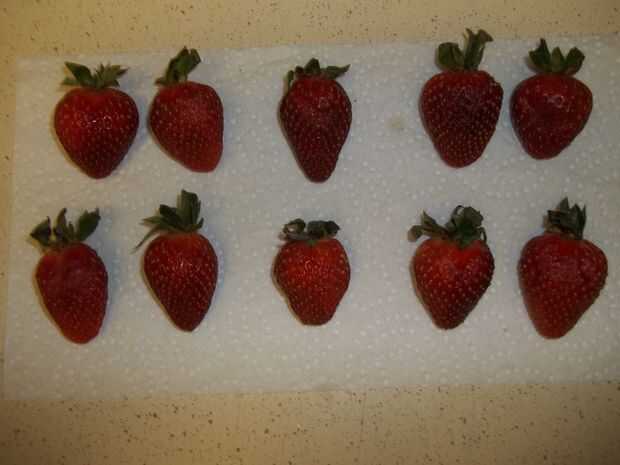 Lavar tus fresas y secarlas bien. Si fueran en el nevera, espere hasta que son temperatura ambiente para usarlos o el chocolate no se pegue muy bien.