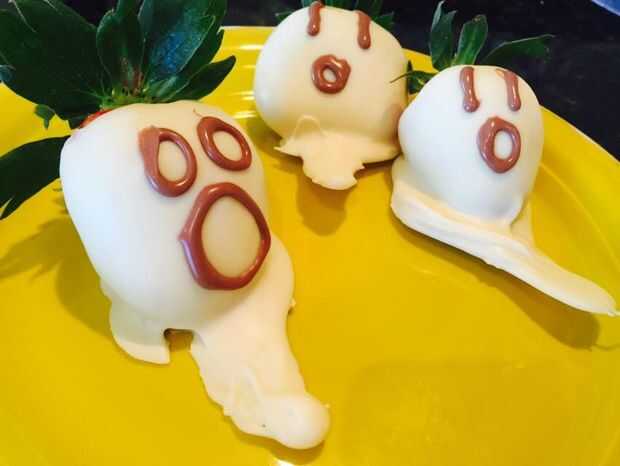 Estas fresas cubiertas de chocolate son un dulce y 'escalofriante' (para ser sinceros que creo que son demasiado lindos para ser aterrador). Son perfectos para un saludable snack dulce de Halloween.