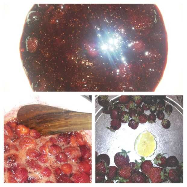 cortar el resto de las fresas, poner en un cazo con azúcar y un zumo de limón; cocinar hasta que espese deja enfriar parcialmente Vierta encima el cheesecacke