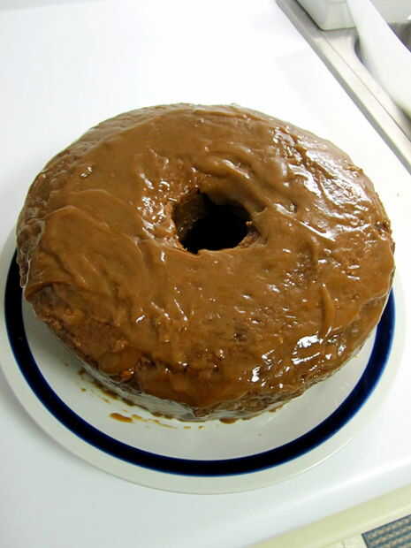 Apenas haya terminado de hacer un delicioso pastel de manzana fresca con glaseado de caramelo.