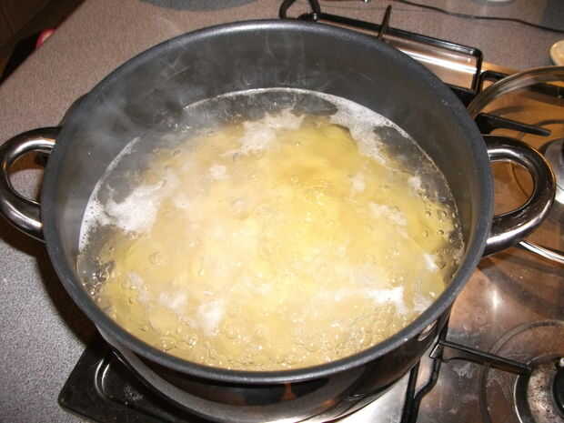 Cocinar la pasta hasta 'al dente' - un poco firme a la mordida, no crujiente, no empapada.