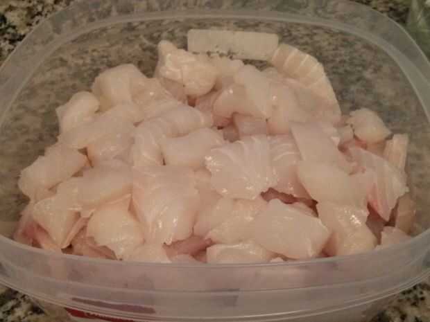 - 2 libras de filete de pescado fresco (en este caso 1 lb Halibut y 1 libra de Tilapia), en rodajas.