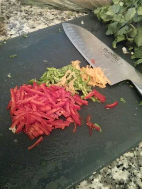 - Mezcla de chiles frescos al gusto (hemos utilizado Serano Habanero 2 1 y 2 Chilis rojos),-sin semillas y picados finamente.