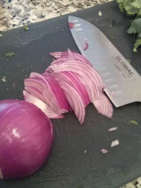 - 1 cebolla roja en rodajas.