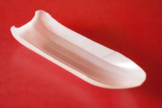 Corte la parte redondeada con las tijeras y refinar la frontera con una cuchilla, ten cuidado para no cortarse! A obtener una forma de barco, dejar poco de plástico en las esquinas de los lados posteriores, de modo que ayudarán a reforzar la conexión con el marco.