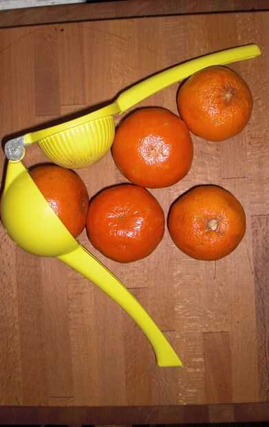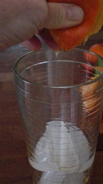 1 cortar las naranjas y limones a la mitad y exprimir directamente en la coctelera.