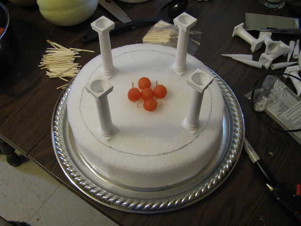 Paso 4: Insertar pilares en gran círculo de espuma de poliestireno en un patrón cuadrado