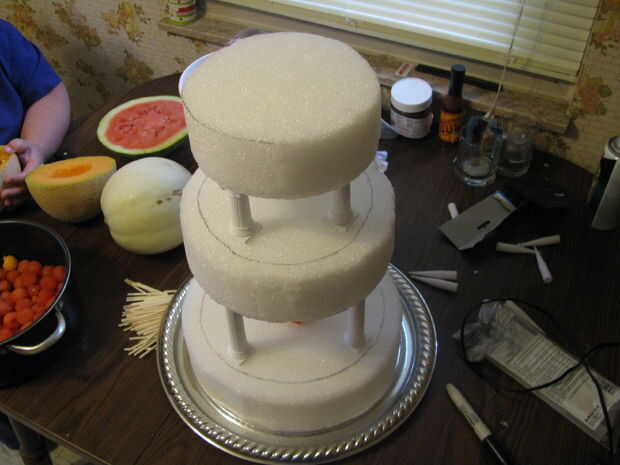Fresco fruta tres niveles torta de la boda (3 / 9 paso)