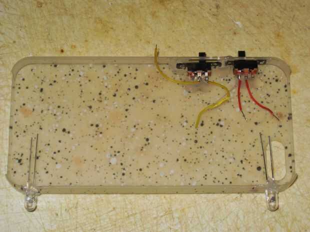 así que tomar tus dos interruptores y poner el control deslizante a través de un agujero y hacer lo mismo con el otro interruptor luego pegamento caliente en el lugar,