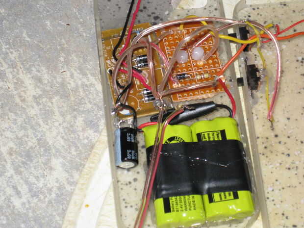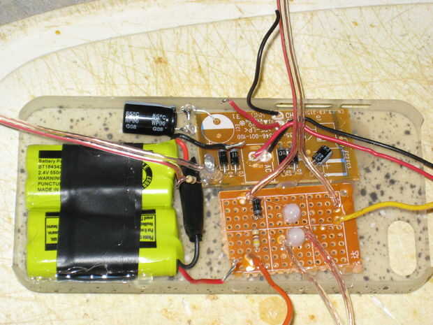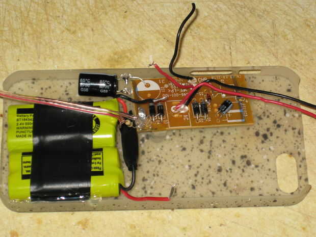 Ahora toma el controlador de carga y coloque en el caso de fondo frente a su batería y pegamento caliente en su lugar,
