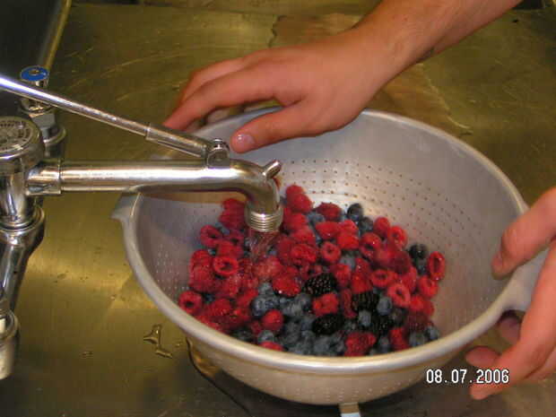 Lavar, escurrir y pat bayas secas.