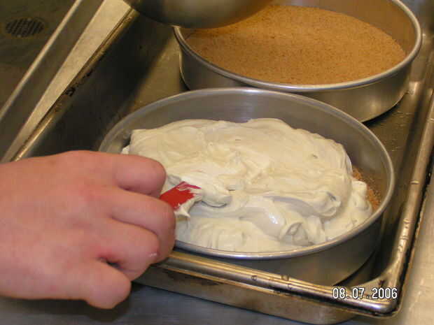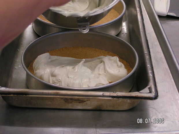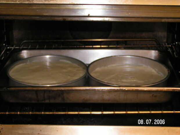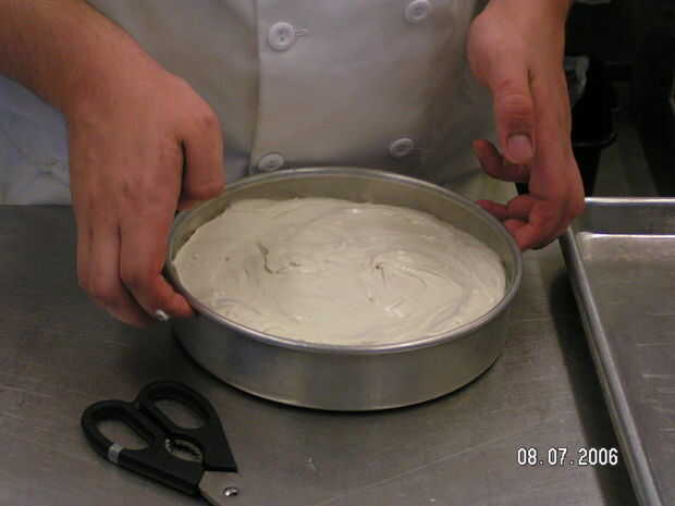 2. Coloque cada pan de tarta de queso en un pan relleno con agua hasta la mitad el hotel pan 2" hotel pan,