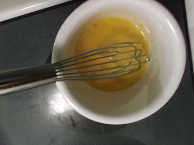 Revolver los huevos y vierta todo (llovizna lentamente alrededor de algunas consigue consigue en todas partes)