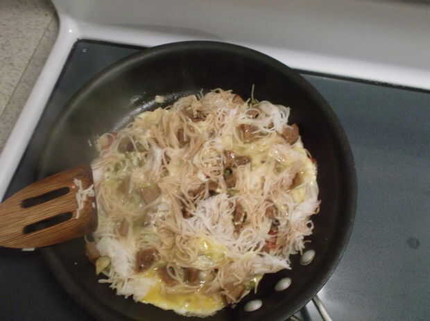 Cocer durante un par de minutos para que la parte inferior pone más huevos.