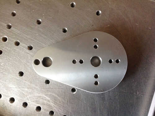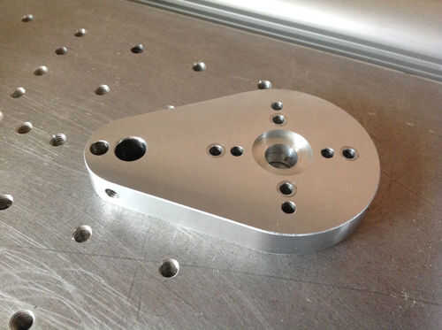 Sujetar pieza a una pieza de sacraficial de acero en una máquina de vicio con tornillos M4 y el perno a través del agujero de diámetro 10.