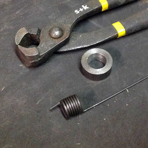 Después de hacer varios más muelles y asambleas, encontré la primavera realiza mejor en espiral en la dirección opuesta a la original. También descubrí que una forma mejor era formar tanto las piernas primero.