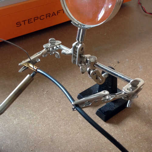 Utilizando un multímetro para la continuidad de la prensada paralelo cables, ajuste el dial de la nota musical (ver foto) y luego mantener una sonda en el extremo del alambre toque la otra sonda a cada uno de los cuatro cables y si oye un tono entonces todo está bien, si no luego prensar más o añadir algunos de soldadura a la Unión hasta que tienes una buena conexión.